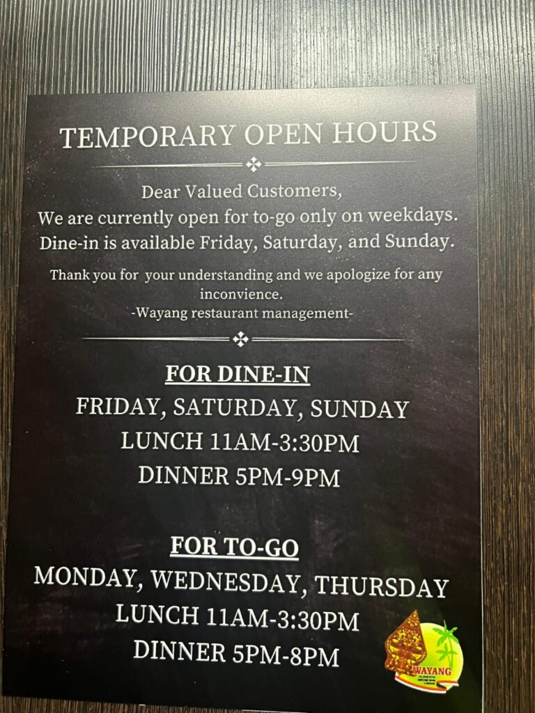 Benny Gunawan2024-03-07Trustindex verifies that the original source of the review is Google. Very authentic Indonesian cuisine,prices on the high side,most rice plates combo will set you back 20 dollars. Willie F.2024-01-22Trustindex verifies that the original source of the review is Google. I thoroughly enjoyed my food. My only gripe is that the fried chicken I recieved was room temperature. I still plan on coming back though. David Muliawan2024-01-22Trustindex verifies that the original source of the review is Google. I tried many Indonesian restaurants in the area before and hands down this Wayang restaurant offers the best and most authentic Indonesian foods. I just love the wonderful combination of flavors and fragrances from the tropical spices used in the cooking. Additionally, the owner Lily is very friendly and attentive to all guests. She makes sure everybody is satisfied. It's always been a great pleasure dining at this place. Highly highly recommended! You should definitely give it a try. Layla Shaikley2024-01-21Trustindex verifies that the original source of the review is Google. Phenomenal. Kwe Tia Goreng noodles were amazing. We got the satay too and loved it. And my husband loved the nasi kuning complit. The noodles are a must have imo. Kind staff Voyage 2 Paradise2024-01-13Trustindex verifies that the original source of the review is Google. Authentic Indonesian dish makes me want to come back, all the time! 🥰😍🥰 James Williams2024-01-09Trustindex verifies that the original source of the review is Google. Wong Java (now Wayang) house is a must for anyone that loves to try Asian cuisines. My best friend Cary helped his friend open the new place. The chicken satay or “sate” Indonesian style is the best in the West!!! We liked it so much we ordered another order “to “go”! Wife and I rate this as the best we’ve ever tried here in Southern Cal. Great job Cary and the ownership team, we’ll be back every Saturday!!!!!!! Everyone needs to try this and spread the word. Thanks James W. Purwati Kusumo2023-12-03Trustindex verifies that the original source of the review is Google. We picked up order Sheryn Shahwan2023-12-03Trustindex verifies that the original source of the review is Google. I always make an effort to find authentic Indonesian food while in LA. This place is a true gem. The food was heaven on a plate and the service was impeccable. I will definitely come again whenever I’m in LA. I had the Nasi Bungkus as the entree, Gado Gado for the appetizer, and a Durian milkshake. Absolutely delicious.Load more